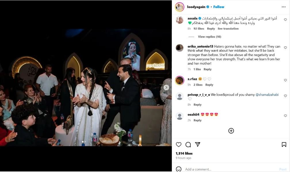 وفي اول تعلق لـ اصالة على ما حصل، حرصت الفنانة السورية على دعم ابنتها، اذ ردت على منشور دوّنه ابنها الكبير خالد عبر “إنستغرام”، قال فيه: “السعي وراء الحلم ليس جميلًا دائمًا، ولكن طالما فيه شغفٍ في قلبك وصمودٍ في روحك، لا شيء لا يمكنك تحقيقه.. لأن الرحلة هي حيث يتشكل جوهرك الحقيقي، وهذا هو الجزء الذي يستحق التمسك به عندما تصل أخيرًا”.