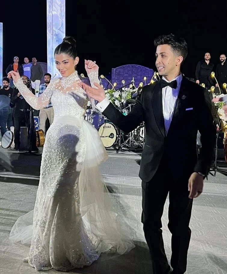 وكان نجم الحفل بدون منازع، فستان الزفاف الخيالي الذي اختارته ليلى من توقيع المصمم اللبناني العالمي زهير مراد، والذي استطاع أن يحوّل أحلام العروس إلى واقع ملموس، يجمع بين الرومانسية الحالمة والطابع الملكي الفاخر.