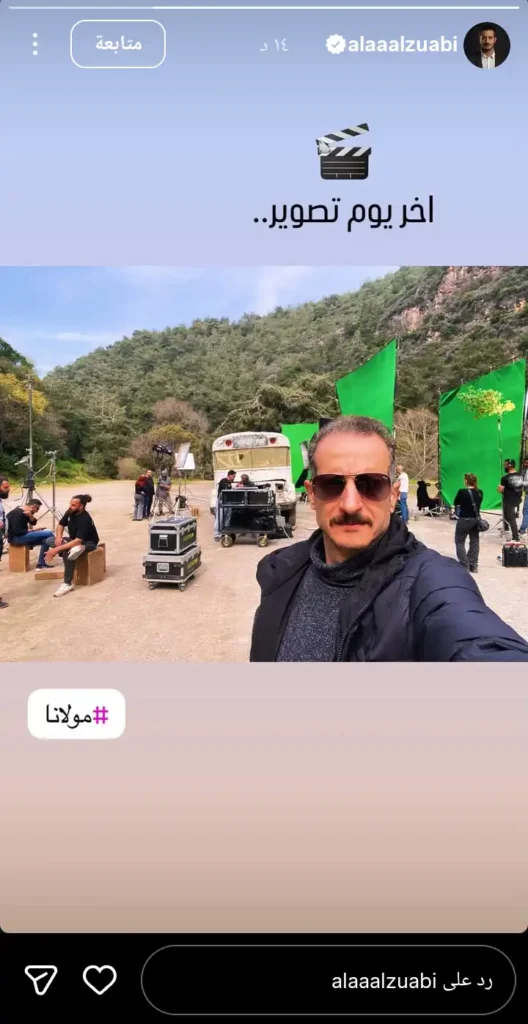 كشف الفنان السوري علاء الزعبي انتهاء تصوير مسلسل مولانا اليوم الجمعة 14 مارس/ آذار الحالي، بعدما شارك صورة من كواليس العمل من خلال “ستوري” عبر حسابه على منصة “إنستغرام”، التقطت بين منطقتي دير القمر ووادي شحرور في لبنان، وأرفقها بتعليق مقتضب كتب فيه: آخر يوم تصوير.. مولانا.