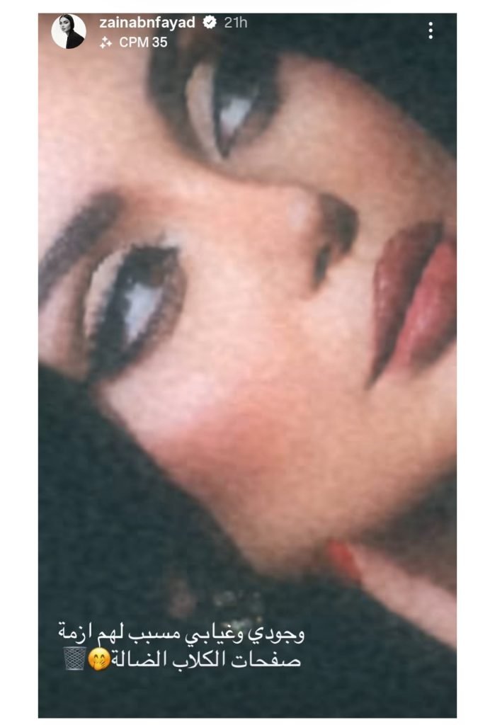 انتشرت في الساعات الأخيرة أخبار غريبة عن محاولة السيدة زينب فياض الانتحار وإنهاء حياتها، وهو ما اضطرها للتفاعل عبر خاصية “الستوريز” في تطبيق “إنستغرام” لتكذيب ما يتم تداوله عنها.