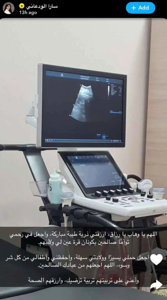 تفاعل الجمهور بشكل واسع مع صورة السونار التي نشرتها سارة الودعاني وتعليقها عليها، والذي تضمن دعاءً اعتبره البعض تلميحًا لاحتمال حملها بتوأم، حيث قالت: اللهم يا وهّاب يا رزّاق، ارزقني ذرية طيبة مباركة، واجعل في رحمي توأمًا صالحَين يكونان قرة عين لي ولأبيهما.
