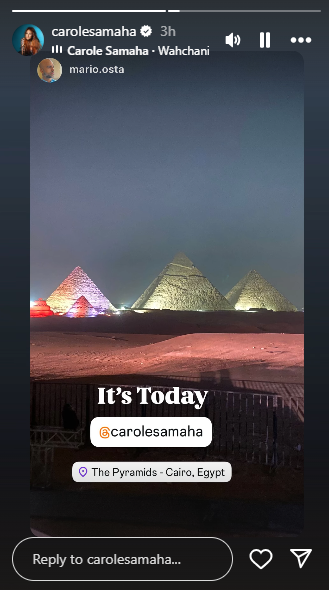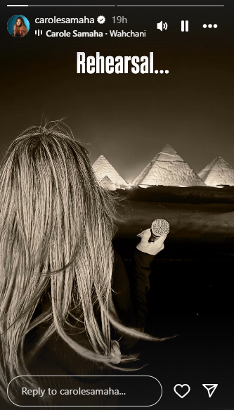 حرصت الفنانة اللبنانية كارول سماحة على توثيق لحظات ما قبل الحفل عبر حسابها الرسمي في منصة “إنستغرام”، حيث نشرت صورًا لها أمام الأهرامات وهي تمسك المايكروفون استعدادًا للأداء الليلة، وعلّقت قائلة: بروفات. في إشارة إلى التدريب قبل إحياء حفل غرامي، وفي صورة أخرى علقت عليها بكلمة: اليوم.