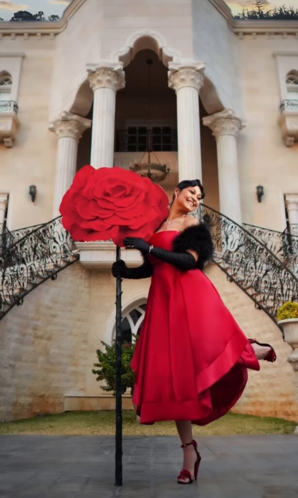 في عيد الحب، وبحسب ما قالت في حديث خاص لموقع “عالمي”، فضلت مينا رحال الابتعاد عن المألوف، حيث قررت تصميم شكل وردة كبيرة بعيدا عن شكل “القلب” الذي يُعتمد غالبا في عيد الحب، لترتديه الممثلة بيرناديت حديب وتتألق في هذه المناسبة المميزة.