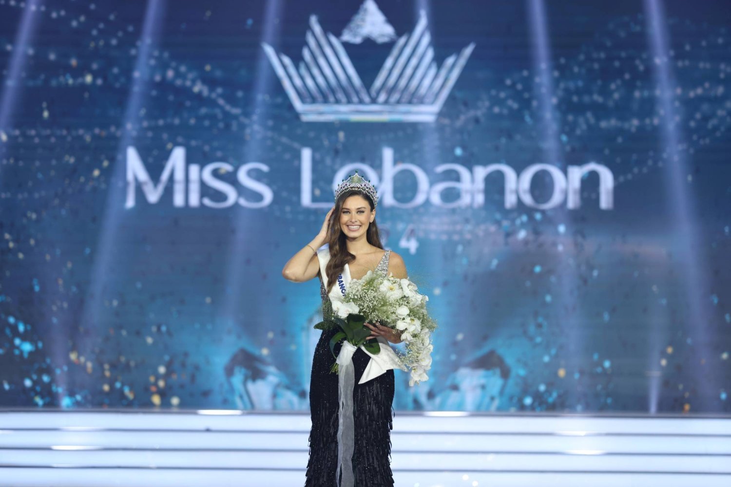 تألقت “ملكة جمال لبنان” 2024 ندى كوسا، بزيّها الوطني خلال افتتاح مسابقة “ملكة جمال العالم” 2025، حيث كان الثوب لافتًا بلونه المخمل القرمزي الداكن، والتطريز الذهبي المتقن الذي عبّر عن النسيج الثقافي الغني للبنان.